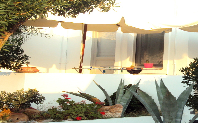 Στο ισόγειο τα 3 studioς άρτια εξοπλισμένα ( ψυγείο, βραστήρα, τηλεόραση , a/c και wifi ) και με μικρή κουζίνα δυνατότητας προετοιμασίας μικρών γευμάτων αποτελούν ιδανική επιλογή φιλοξενίας για οικογένειες με παιδιά καθώς μπροστά στον ενιαίο χώρο σε απόσταση λίγων μέτρων βρίσκεται μικρή αμμουδερή παραλία